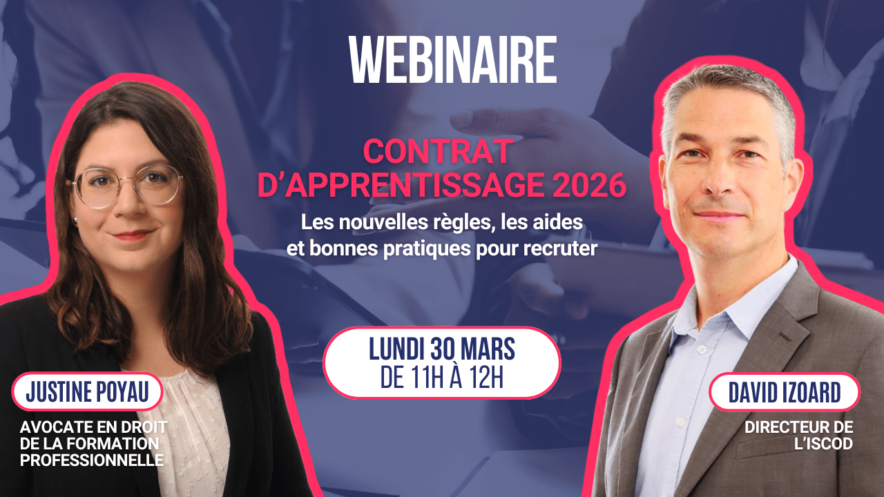 Ce webinaire organisé par l’iSCOD vous offre un décryptage complet du contrat d’apprentissage 2026, avec les dernières évolutions légales et les aides disponibles. Vous apprendrez à intégrer efficacement l’alternance dans votre stratégie de recrutement et à tirer le meilleur parti de ce levier pour pérenniser vos équipes.
